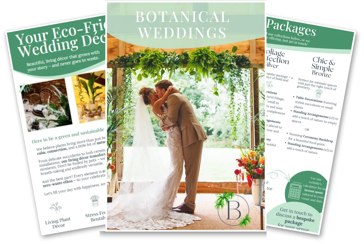 Download our brochure for stunning greenery ideas that make your day unforgettable — without the waste.